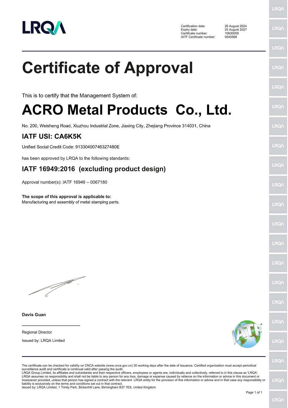 In 2006, We passed Lloyd's ISO/TS16949 and ISO9001:2000 international quality system certification. Now, the company has passed IATF16949:2016 and ISO9001:2015.Through continuous efforts to provide customers with the best quality service.